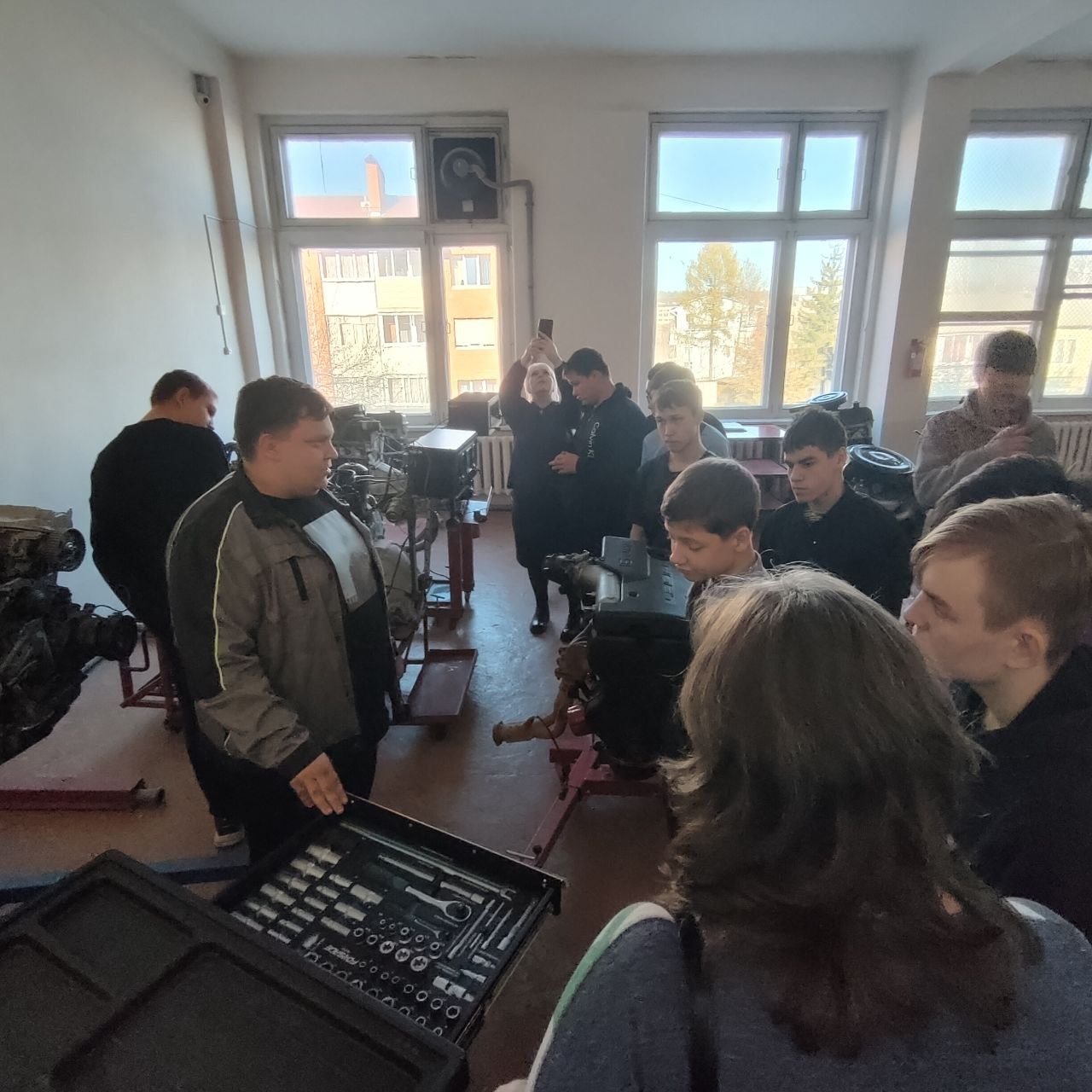Сначала ребята отправились на экскурсию по мастерским Братского промышленного техникума. Школьников познакомили с разнообразным инструментом и оборудованием, которое необходимо слесарю: от гаечных ключей и домкратов до диагностических приборов.