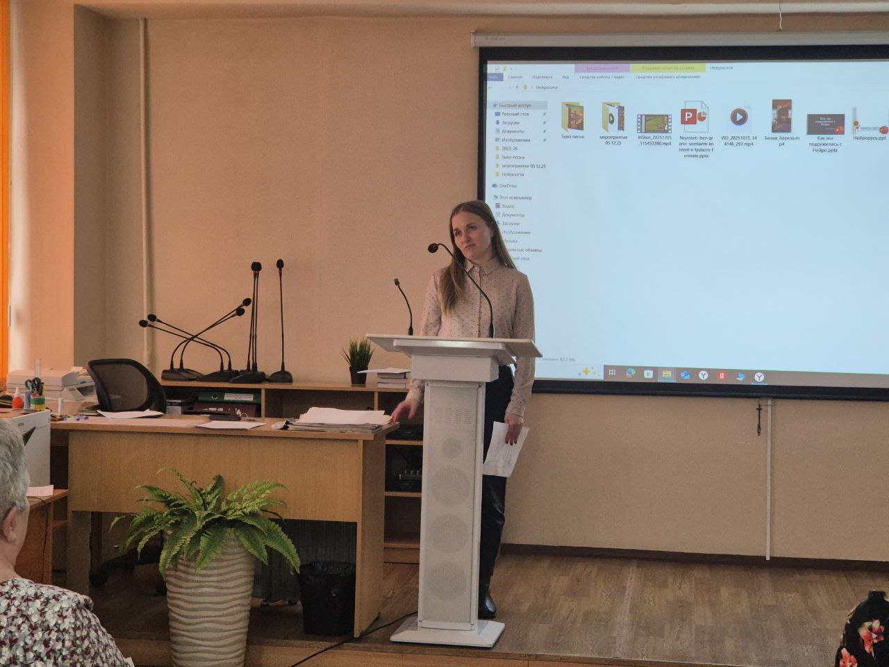- Мухачева Е.А. от цикловой комиссии строительного профиля показала, как нейросеть «оживила» девиз комиссии и ключевые визуальные образы, превратив их в динамичный видеоряд.