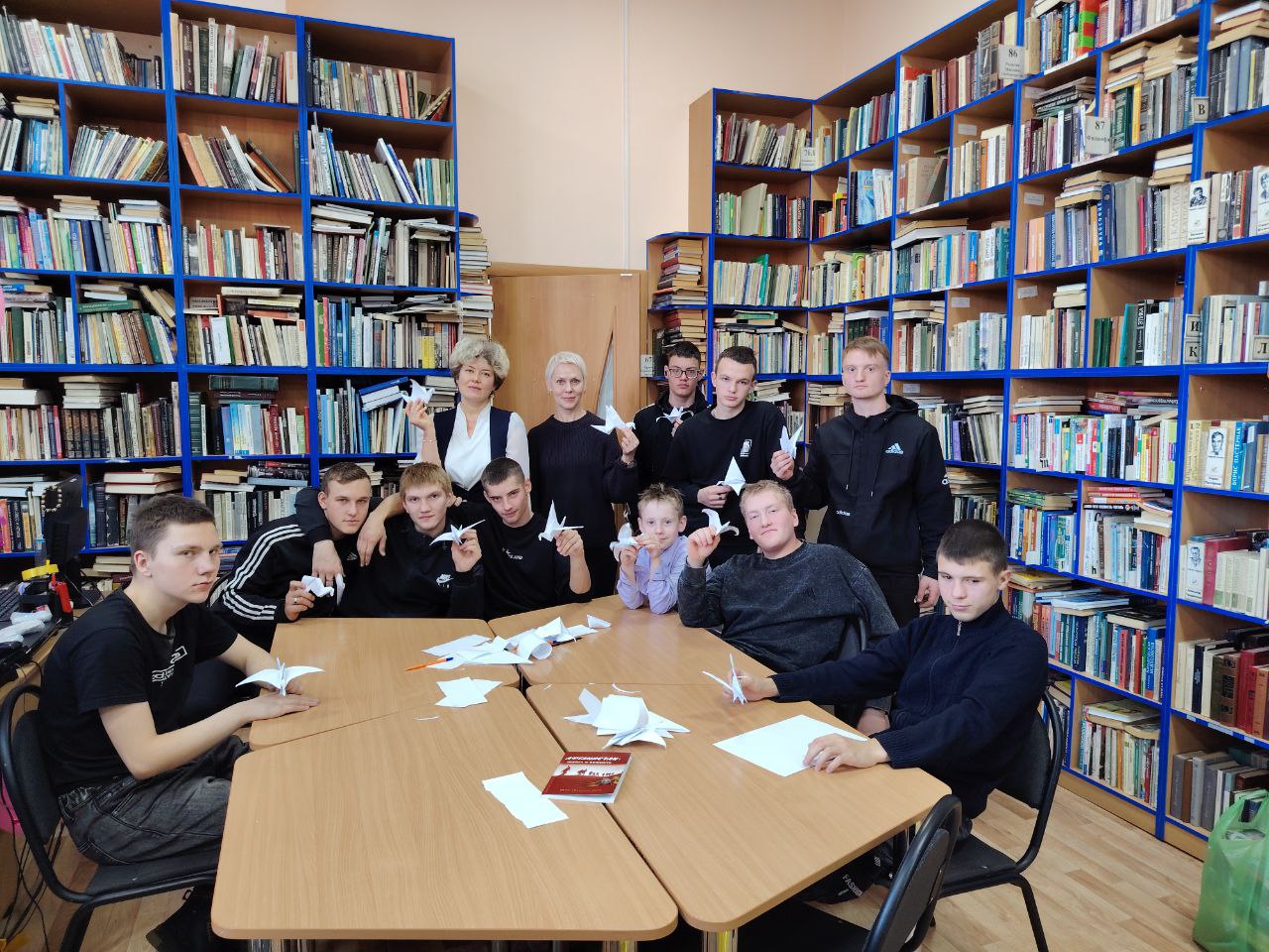 А уже на следующий день, 23 октября, в библиотеке семейного чтения № 8 состоялась встреча, посвященная этой важной теме. Студенты "Братского промышленного техникума" из группы РЗ-4 приняли участие в литературном часе под названием "День белых журавлей: необыкновенная история, придуманная жизнью".