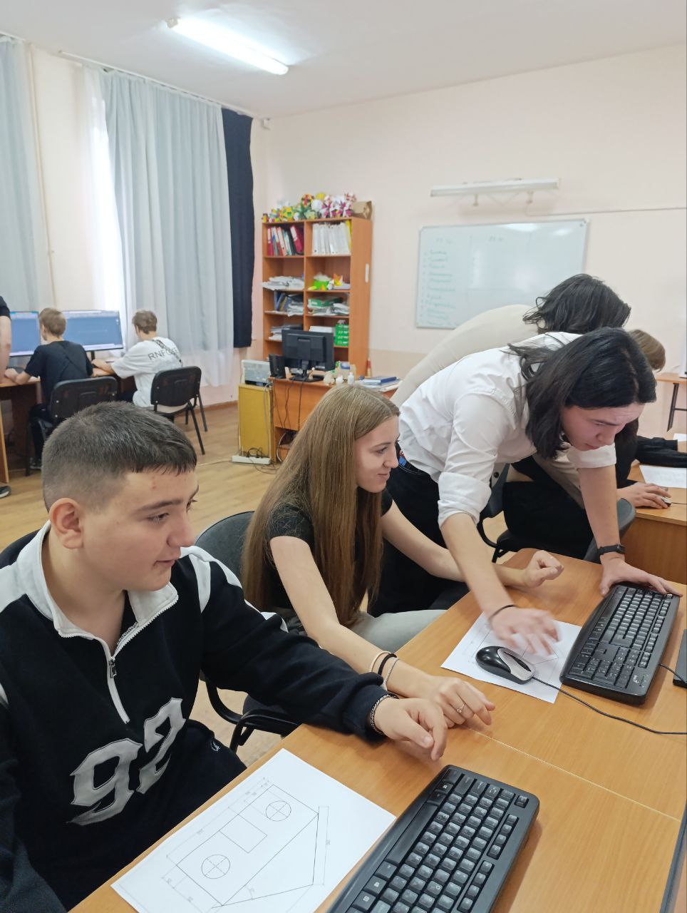 Цель профпробы: научить создавать чертежи в системе автоматизированного проектирования AutoCAD — рабочем инструменте дорожника-строителя. Участники профориентационного мероприятия под руководством педагога-наставника и студентов 3 курса создали свои первые чертежи в AutoCAD. Они распечатали результаты; момент был запечатлен на совместном фото с первыми чертежами, выполненными в системе автоматизированного проектирования!