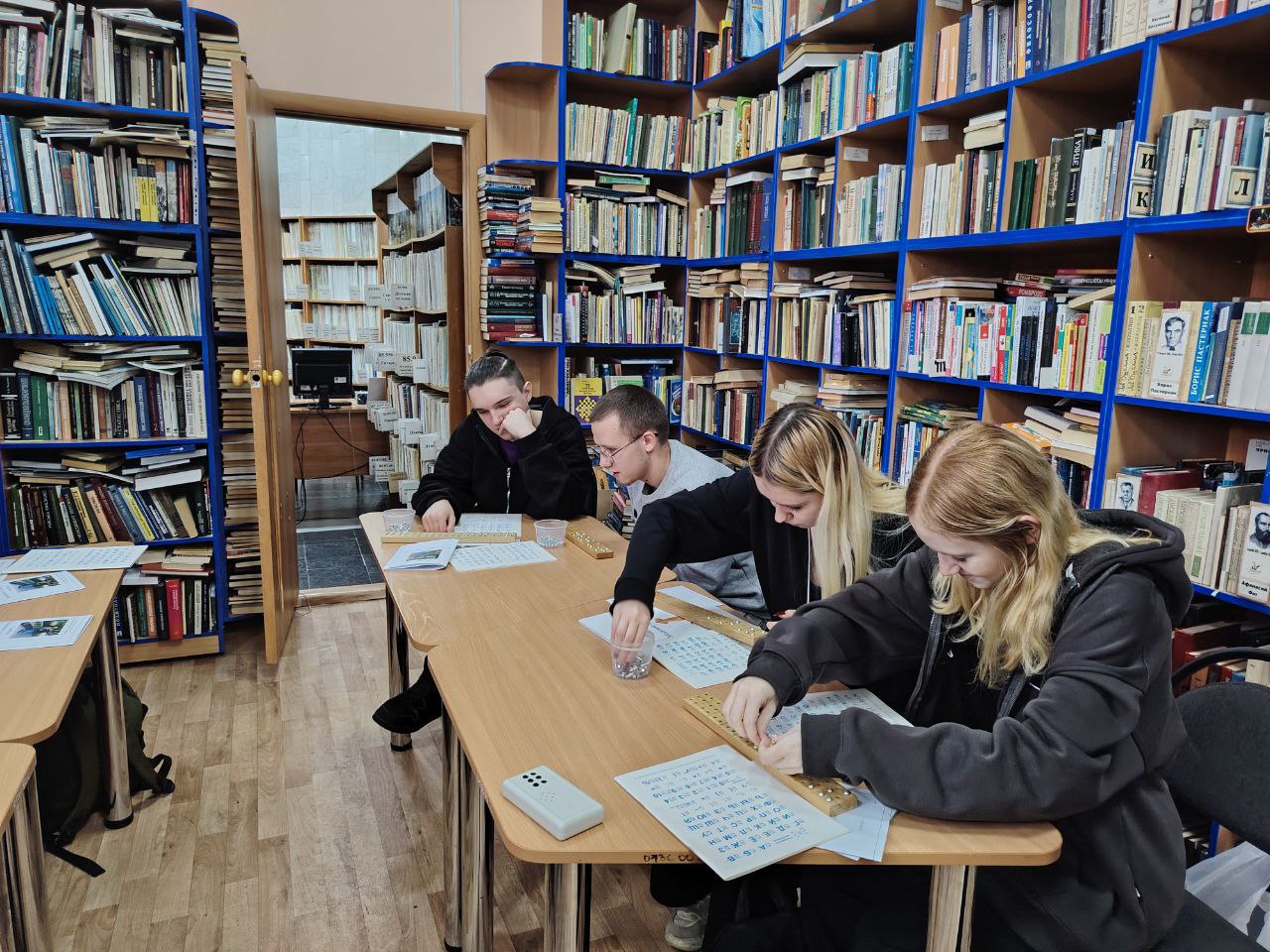 13 ноября – особенный день, ведь он посвящен доброте и символу незрячих людей – белой трости. В этот день в библиотеке семейного чтения № 8 произошло важное событие: волонтеры Братского промышленного техникума прошли ценное обучение. Ребята не только освоили тонкости общения с незрячими людьми и научились оказывать им необходимую помощь, но и познакомились с удивительным миром шрифта Брайля, попробовав себя в чтении и письме по нему. Это шаг к большему пониманию и поддержке тех, кто видит мир иначе.